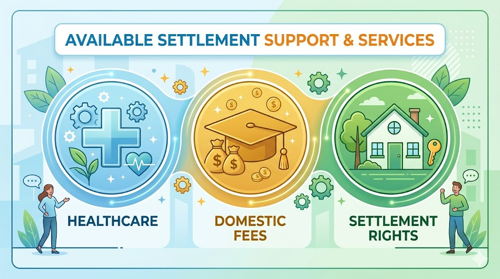 • Social Security: Access to certain Centrelink benefits after a waiting period.